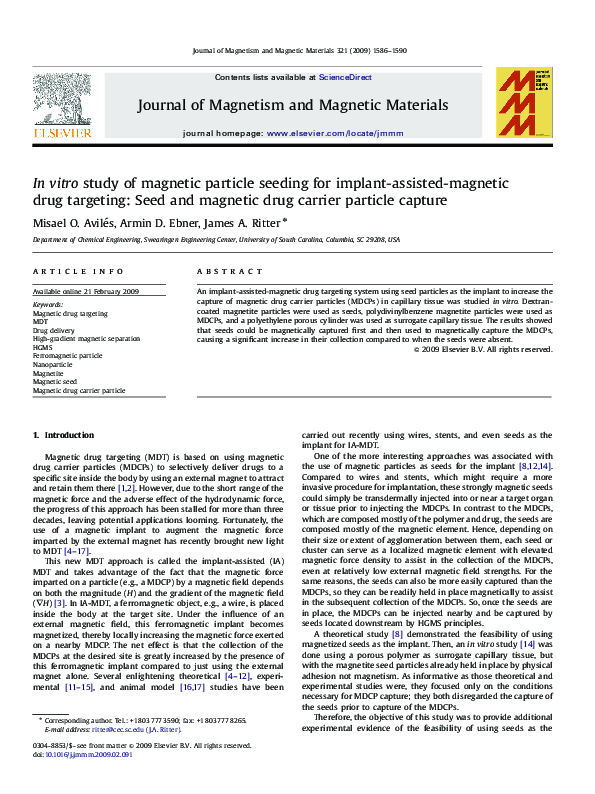 Pdf In Vitro Study Of Magnetic Particle Seeding For Implant Assisted Magnetic Drug Targeting Seed And Magnetic Drug Carrier Particle Capture Armin Ebner Academia Edu