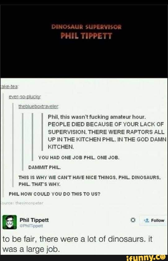 Emma Green On Twitter Apparently Phil Tippett Has Been Downgraded From Dinosaur Supervisor To Dinosaur Consultant For Jurassic World Booo Http T Co 5yd5dgieiu Twitter